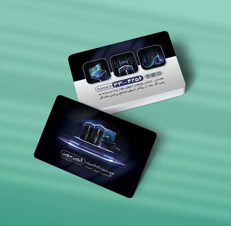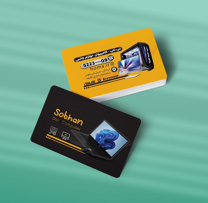 کارت ویزیت فروشگاه لپ تاپ و کامپیوتر (طراحی و چاپ)