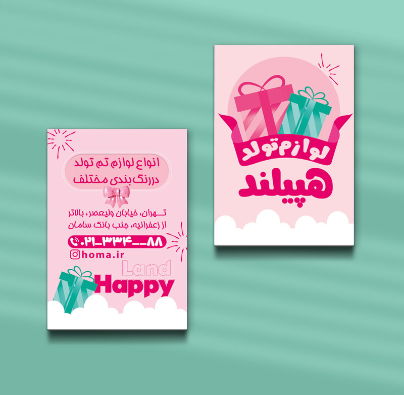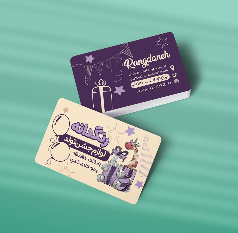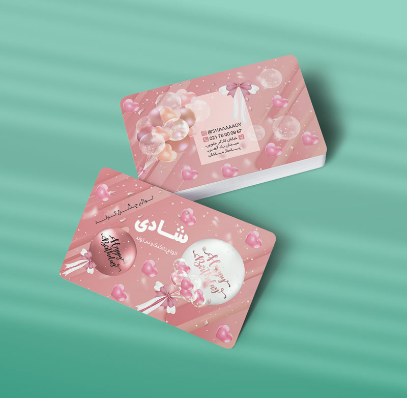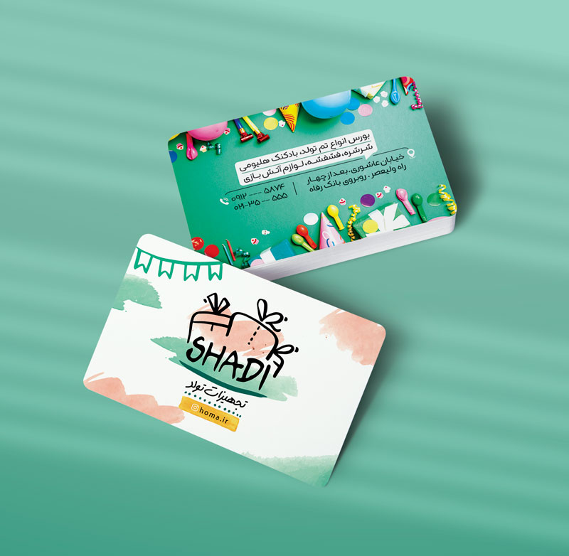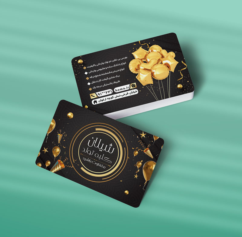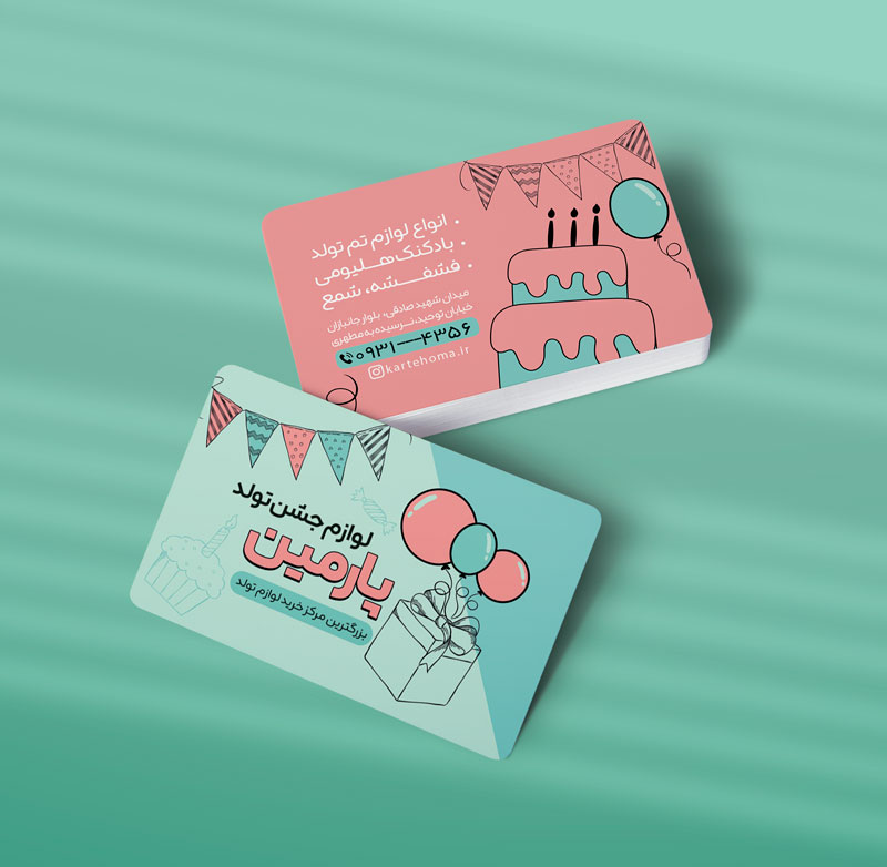اگر قصد دارید برای فروشگاه لوازم جشن تولد خودتون کارت ویزیت چاپ کنید، اما طراحی اون آماده نیست و لازمه که طراحیش رو هم ما براتون انجام بدید، جای درستی هستید.