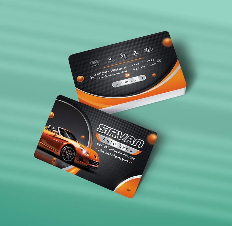 طرحهای زیر، طرحهای  مناسب برای کارت ویزیت نمایشگاه ماشین و اتومبیل هستند که به شما ایده میدند و کار را برای ما و شما آسون میکنن. شما هم میتونید یکی از این طرح ها رو انتخاب کنید، هم میتونید ترکیبی از اونها رو انتخاب کنید و هم اگر هیچکدوم از این طرحها رو نپسندیدید اما خودتون نمونه کارت ویزیت نمایشگاه ماشین و اتومبیل رو دارید، برای ما بفرستید تا مثل همون رو براتون طراحی کنیم.